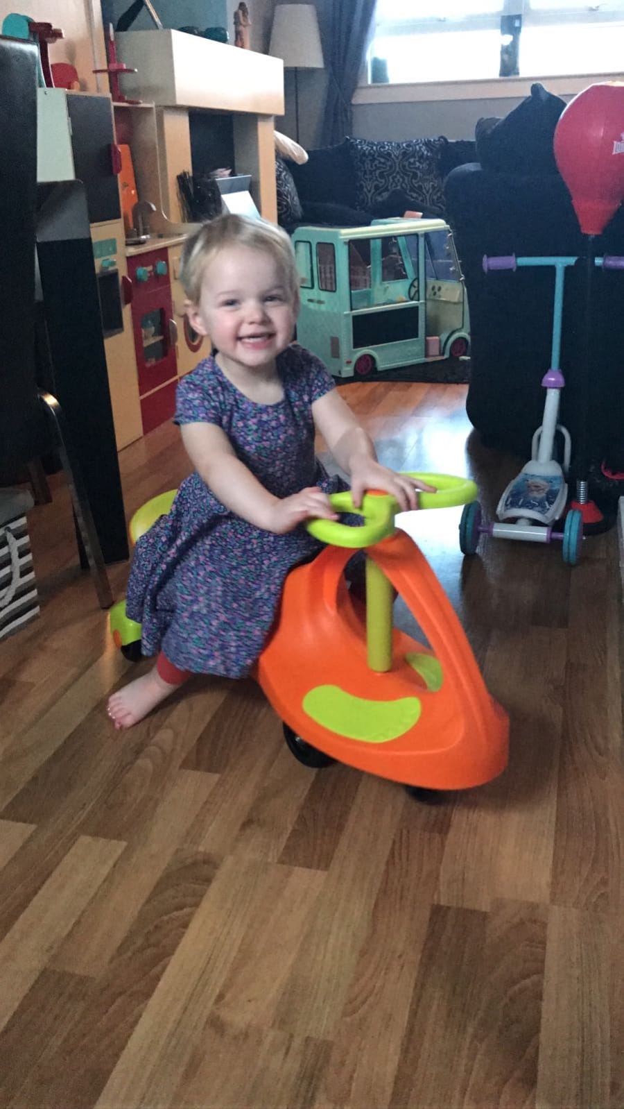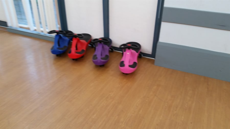 These ride on cars are brilliant for everyone age 3 and over. You sit on them with your feet up, then start to wiggle the steering wheel which then starts the cars moving forward. Really easy to use but so much fun.