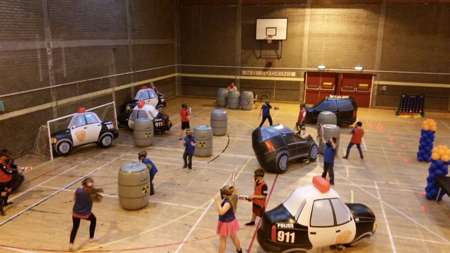 The day starts with the party hosts arriving 1 hour before the party starts to turn your chosen venue into a real life nerf arena including 2 bases, inflatable Toxic barrels, inflatable vehicles, Barriers and Camouflage netting. It really does give the WOW factor when your guests arrive.