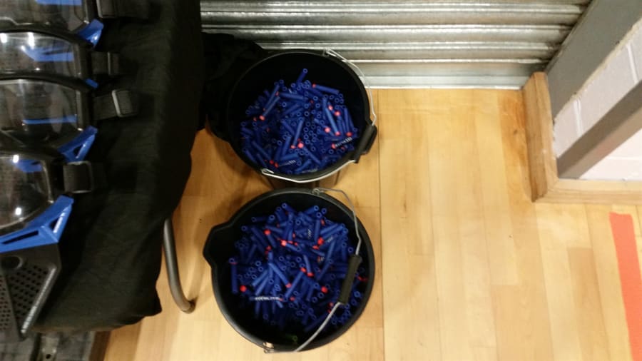 We use 6 shot nerf guns making it more fun for the kids and less time loading back up. Each party is supplied will approximately 2000 bullets.