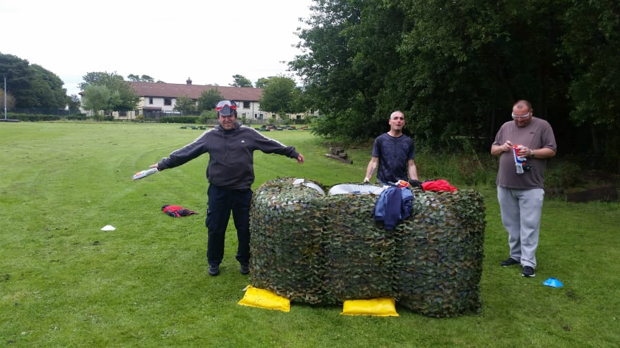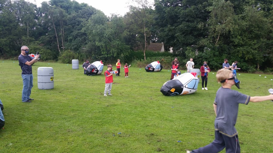 Come party time the party hosts take control, the Participants get lined up and receive a quick safety briefing with some rules( We make this as fun and as quick as we can). They then get their safety equipment, gun and vest and then split into 2 teams.